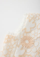 - Sleeveless bodice with scalloped edges
