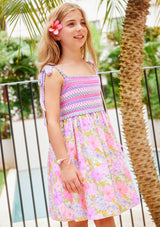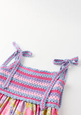 Charming and feminine, the Charlotte Crochet Mini Dress is a holiday must-have. Featuring a hand-crochet bodice in pink and lilac stripes and a flowing floral-printed skirt, this design blends artisanal detail with playful summer energy. Perfect for both resort days and holiday dinners, it’s the ultimate versatile piece.