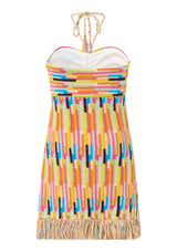 The Alia Crochet Mini Dress is a vibrant resort piece designed to take your mini from poolside to sunset dinners with ease. Featuring multicolour crochet fabrication and playful fringe hem detail, this dress is a statement of carefree summer style. Perfect worn on its own or layered over swimwear.