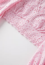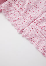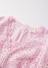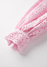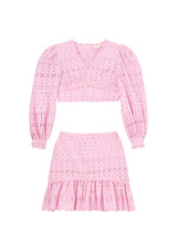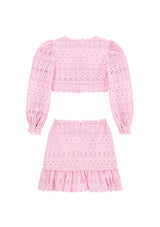 Dress them up in style with the Cecilia Top. This crop top comes with long sleeves and showcases an elegant embroidered fabrication. It's a versatile piece that can be worn casually with denim shorts or paired with the matching Cecilia Skirt for a coordinated and chic look.