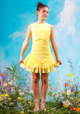 Let your child shine in our Willow Dress. With its sleeveless design and frilled hem, this mini dress adds a playful touch to any occasion. Perfect for a day of fun and exploration.