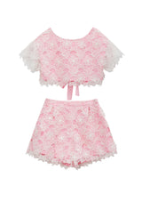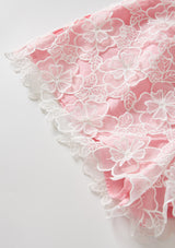 Complete your little one's ensemble with our charming Eloise Skirt. Crafted from a white lace overlay on a pink fabrication, this mini skirt adds a touch of elegance and playfulness. Pair it with the matching Eloise Top for a stylish and adorable outfit.