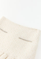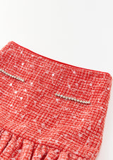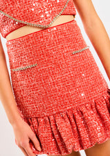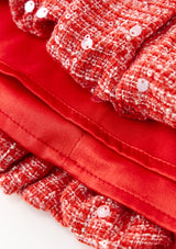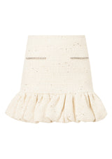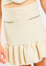 Festive and fun, the Odelia Tweed Mini Skirt is crafted from shimmering tweed with a playful frilled hemline and diamanté detailing. This versatile piece can be paired with the Odelia Heart-Shaped Tweed Top or styled with the matching Odelia Jacket for a complete Marlo holiday look.