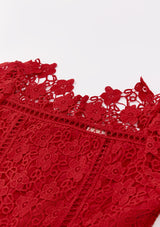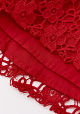 A timeless Marlo favourite returns in festive red - the Cora Embroidered Mini Dress. Crafted from intricate embroidered lace, this show-stopping silhouette features long sleeves and a tiered frill skirt, perfect for holiday celebrations and special occasions.