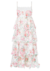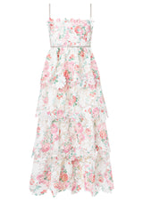Make a breathtaking statement this season in the Joanna Embroidered Maxi Dress. Crafted in a dreamy floral embroidery, this tiered silhouette features sparkling diamanté straps and scalloped edges throughout. Designed for twirling, this enchanting maxi is the perfect style for every festive celebration and special occasion.