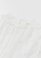 - Short sleeves with scalloped edges