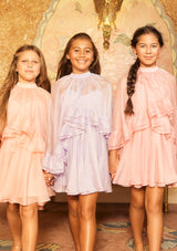 The Anastasia Mini Dress in soft tones is graceful and versatile. Ideal as a graduation dress for girls or special occasion dress, it’s designed to shine at weddings, birthdays, or confirmations.