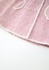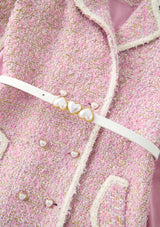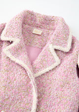 Make a sparkling entrance in the Glimmer Tweed Cape Dress. With its shimmering tweed texture and cape silhouette, this is a bold take on formal dresses for girls, perfect for spotlight moments.