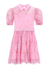 Sweet and stylish, the Monroe Lace Mini Dress brings playful charm with its lace accents. A lovely option for birthday dresses or girls’ party gowns.