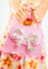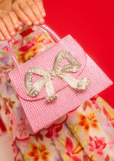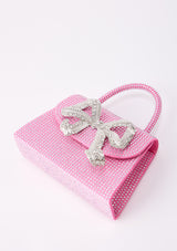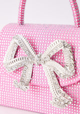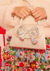 Add a touch of sparkle to every outfit with the Adalyn Diamante Bag. Adorned with shimmering crystals and a statement bow embellishment, this mini top-handle bag is perfect for festive occasions and special celebrations. Available in soft white and pretty pink, it pairs perfectly with every Marlo holiday look.