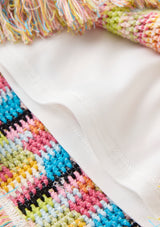 The Alia Crochet Mini Dress is a vibrant resort piece designed to take your mini from poolside to sunset dinners with ease. Featuring multicolour crochet fabrication and playful fringe hem detail, this dress is a statement of carefree summer style. Perfect worn on its own or layered over swimwear.