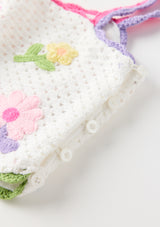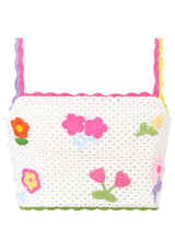 Handcrafted in vibrant crochet, the Daisette Crochet Top is a playful holiday piece designed to be styled from beach to resort. Featuring multicoloured floral motifs and scalloped edges, this cropped silhouette pairs perfectly with the matching Daisette Crochet Mini Skirt.
