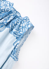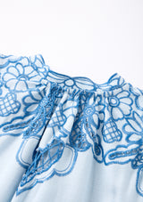 The Annie Embroidered Maxi Dress in powder blue is made for dreamy occasions. Flowing lines and delicate detailing make it a stunning choice for weddings, or christenings.