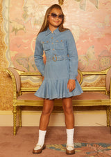 Timeless denim meets girlish charm in the Maggie Denim Mini Dress. With its playful silhouette and soft wash, it’s a versatile staple — easy to dress up for birthday parties or style casually for everyday adventures.