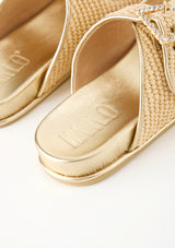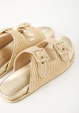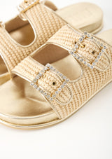 The Anna Buckle Sandals are an elevated everyday staple with a touch of glamour. Designed with a woven-look finish and crystal buckle details, these easy slip-ons are perfect for holidays, weekend outings, and effortless warm-weather styling.