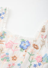 The Everly Embroidered Mini Dress is a sweet and whimsical piece designed for picture-perfect days. Featuring pastel floral embroidery, soft ruffled trims and a charming mini silhouette, this dress brings effortless elegance to every occasion.