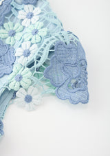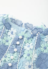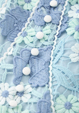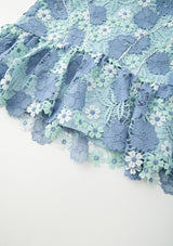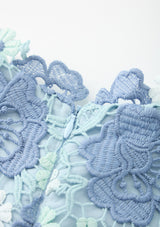 The Jade Embroidered Mini Dress is a beautifully structured piece showcasing delicate powder blue florals and intricate lace applique. With its scalloped trims and flounce hem, this dress is perfect for special events, celebrations and standout moments.