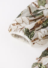 • Sequin floral embellishment