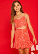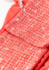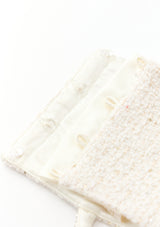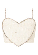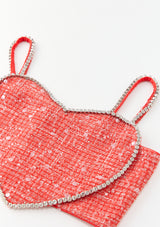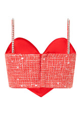 Sweet and sparkling, the Odelia Heart-Shaped Tweed Top brings festive glamour to any outfit. Featuring a heart-shaped neckline outlined with shimmering diamanté trim and delicate shoulder straps, this piece pairs perfectly with the Odelia Tweed Mini Skirt or under the matching Odelia Jacket for a complete look.