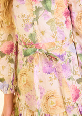 The Seraphina Sleeve Cotton Mini Dress is a dreamy floral silhouette featuring long puff sleeves, delicate button detailing, and a soft tie-waist for a flattering fit. A timeless style that blends elegance with playful charm — perfect for special occasions and picture-perfect moments.