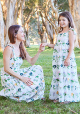 Step into elegance with the Freya Embroidered Maxi Dress. With its embroidered floral fabrication and tie-up straps, this maxi dress is perfect for special occasions. Pair it with our matching dress for women to create coordinated mother-daughter looks that celebrate your special bond.