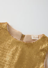 The Harper Sequin Dress is a dazzling mini dress with a gold sequined bodice and a Marlo exclusive floral print tiered skirt. This dress is perfect for making a bold and fashionable statement.