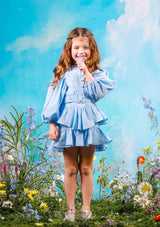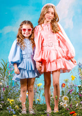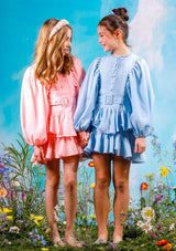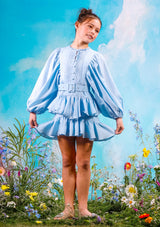 Make a fashion statement with the Mabel Dress. This darling mini dress features long balloon sleeves and a ruffled hemline, perfect for any day of play or celebration.