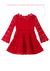 Make holiday dreams come true in the Wonderland Embroidered Dress. Crafted from rich red and ivory hues, this dress features intricate embroidery and a fit-and-flare silhouette that’s perfect for twirling. Whether it’s a holiday event or family photos, this dress adds a fairytale feel to every festive occasion.