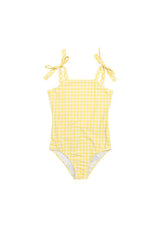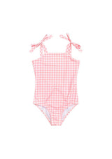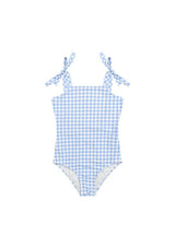 The Pretty Gingham Full Piece is a one-piece swimsuit crafted from a classic silhouette with a fun twist. Featuring tie-up straps, open back detailing and a custom Marlo print fabrication essential for days at the beach. Fully-lined, Ultra-soft high quality fabric.