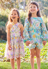 Dress them in style and comfort with our Azure Romper. With its floral fabrication and long balloon sleeves, this romper is perfect for playtime and special events.