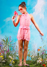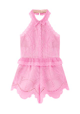 Let your child shine in the Penelope Romper. With its halter neck design and embroidered fabrication, this romper is perfect for playtime and stylish moments.