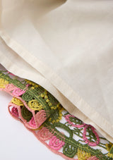 The Ella Embroidered Skirt is a delightful mini skirt adorned with Marlo floral embroidery. Pair it with a white t-shirt or the matching Ella Embroidered Top for a chic and stylish ensemble.