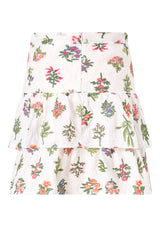 The Lillian Embroidered Skirt is a mini skirt with exclusive Marlo floral embroidery. Perfect for pairing with a white t-shirt or the matching Lillian Embroidered Top, it offers a stylish ensemble.