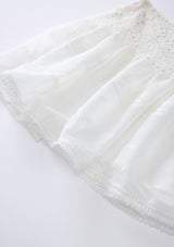 The Rose Skirt is a lovely lace mini skirt that can be dressed casually with a t-shirt or paired with the matching Rose Top for an elegant look. It's perfect for creating a coordinated and stylish outfit.