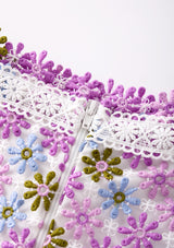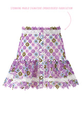 The Sadie Embroidered Skirt is a mini skirt with Marlo exclusive floral embroidery, ideal for pairing with a white top or the matching Sadie Embroidered Top for a stylish look.