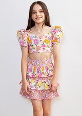 Made from an exclusive Marlo floral print, The Blaire Top features puff short sleeves and a cropped fit. Perfectly paired with the Blaire Skirt, this top can be worn casually or as an iconic look to complement your ensemble.