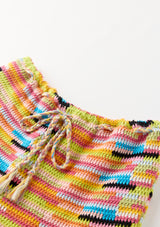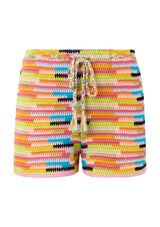 The Alia Crochet Shorts are a versatile holiday staple crafted in our exclusive multicolour crochet fabrication. Featuring an elasticated waistband with braided tie, these shorts are designed for comfort while keeping a chic resort-ready look. Style with the Alia Crochet Top for a complete summer set.