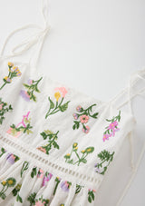 The Emely Embroidered Mini Dress is a sweet and feminine style designed for sunny celebrations. Featuring the same delicate floral embroidery as the maxi, this mini version offers a playful silhouette while still feeling polished and special.
