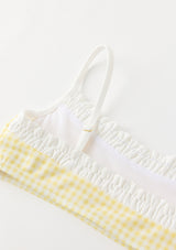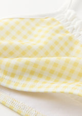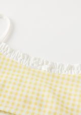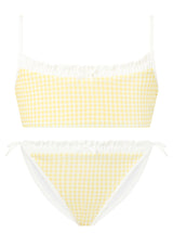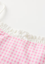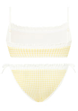 Playful and versatile, the Elara Bikini is perfect for beach days, poolside fun, and holiday escapes. The set features a gingham print with ruffle trim and bow detailing, finished with adjustable straps and tie-sides for a custom fit. A chic resort staple she’ll wear all season long. Mix and match with the Charlotte Terry Towelling Shorts or Mini Wrap Skirt for the perfect resort set