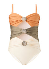 The Cleo Full Piece is a standout swim essential designed for both elegance and play. Crafted with a chic cut-out silhouette, this one-piece features three sculptural shell trims and contrasting colour panels for a modern resort-ready look. Perfect for poolside or beach days, style it with the Cleo Bag or Cleo Visor for a coordinated holiday ensemble.